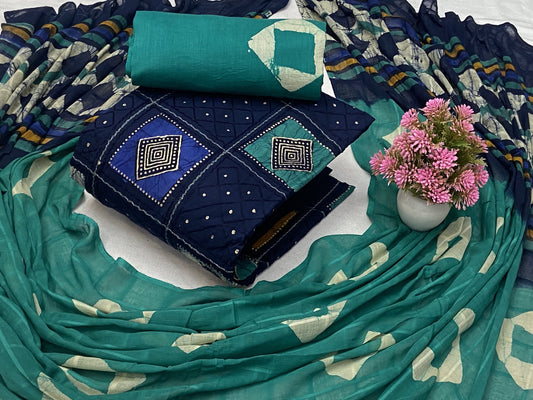 Cotton Lakhnavi Thread Embroidery work Bandhani Dress Material (Unstitched)