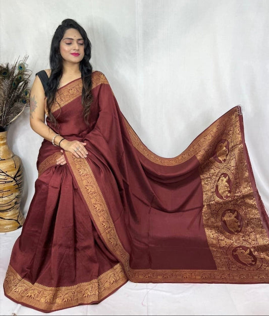 Dola Silk Plain Dye Golden Embroidery Work Silk Saree