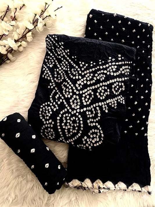 Cotton Satin Authentic Hand Crafted Kutch Bandhani Dress Material (Unstitched)