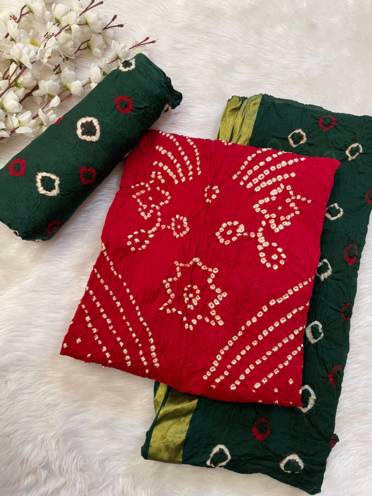 Cotton Satin Heavy Bandhej Work Contrast Kutch Bandhani Dress Material (Unstitched)