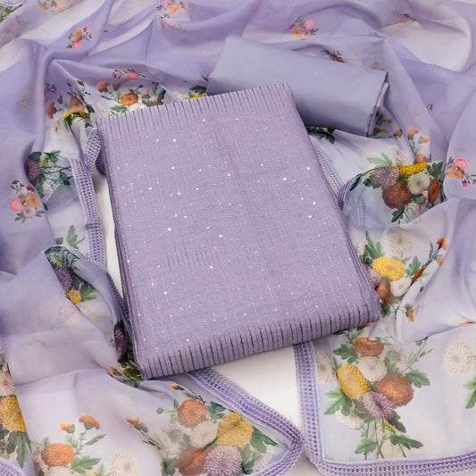 Chanderi Neck Sequence Embroidery Work Dress Material (Unstitched)