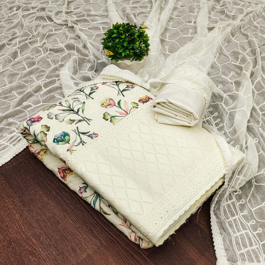 Chikankari Work Cotton Dress Material with Batik Print Salwar and dupatta (Unstitched)