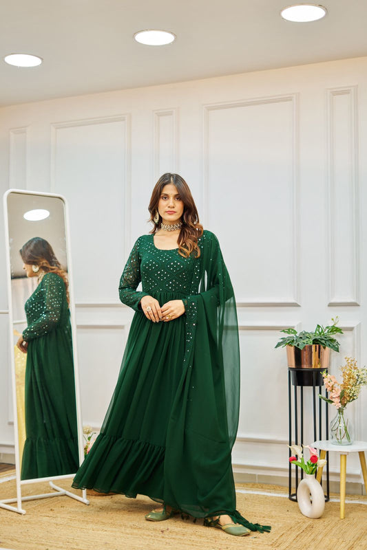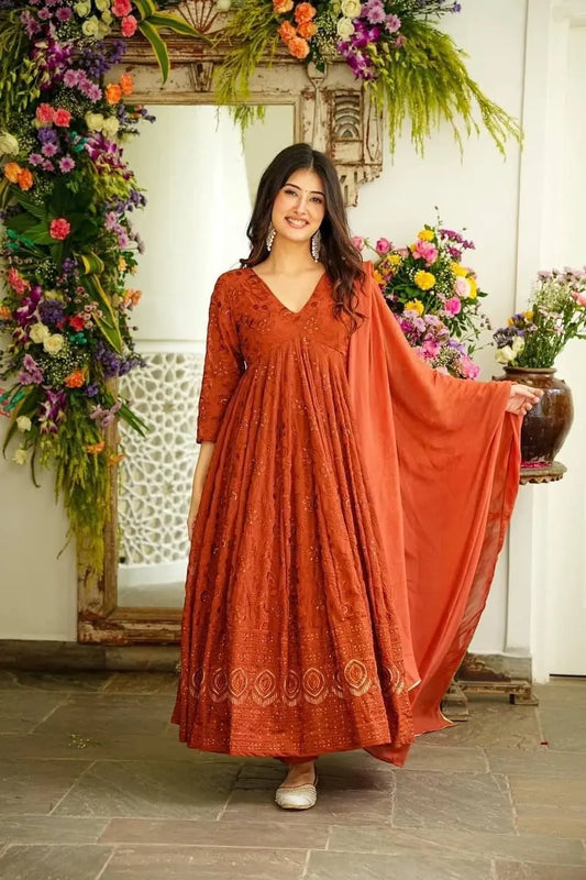 Faux Georgette Print with Embroidery work Womens Stitched Gown