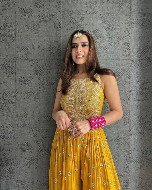 Faux Georgette Haldi Ceremony Dress (Ready to Wear)