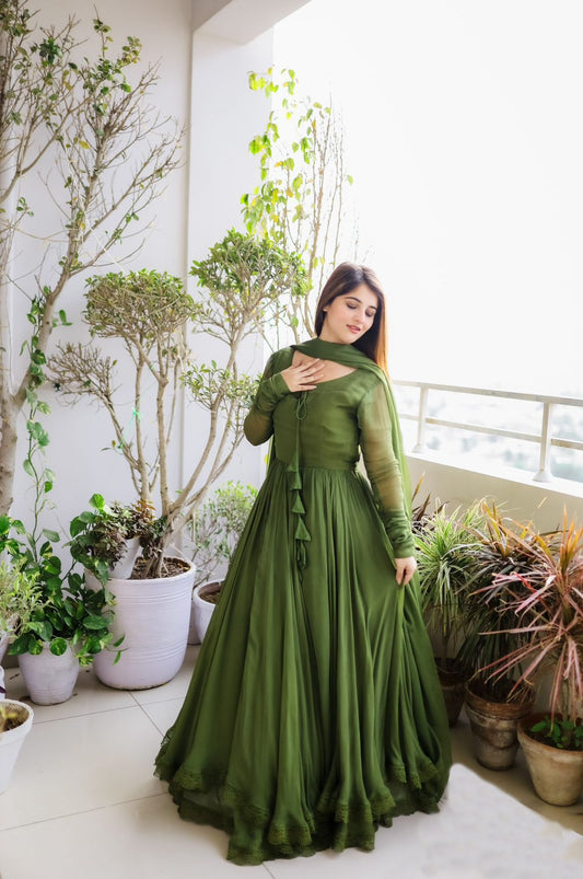 Faux Georgette Lace work With Tussels Gown (Stitched)