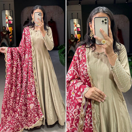 Label shri gown with zari weaving Dupatta Gown Fully Stitched