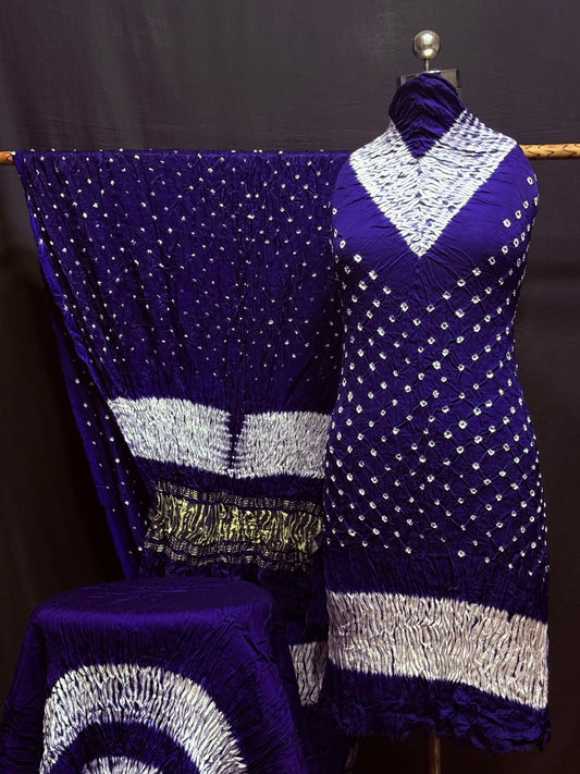 Modal Silk Original Kutch Hand Crafted Barik Bandhej Work Silk Bandhani Dress Material (Unstitched)