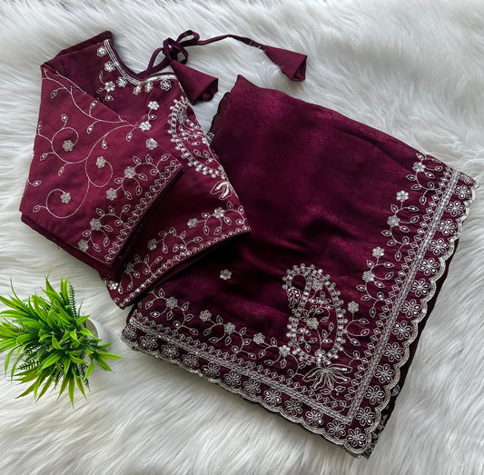 Soft Silk Heavy Embroidery work Party Wear Designer Saree