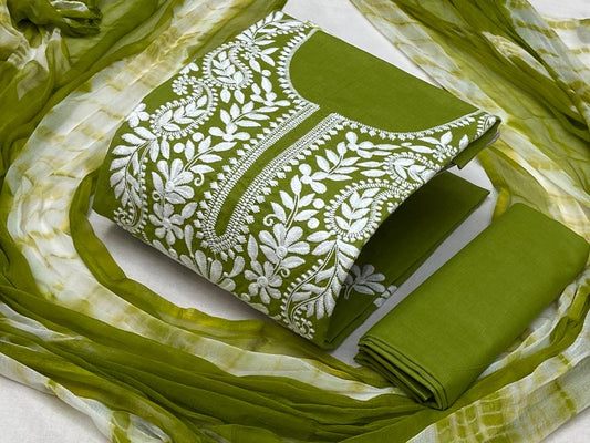 Thread Embroidery work Kurti with Chikankari Pant & Jaipuri moti work bandhani dupatta Set