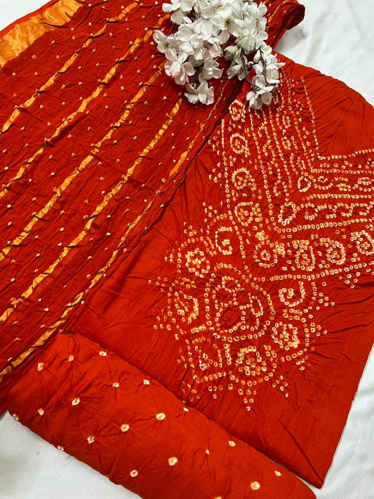Cotton Kasab work Hand Blocked Batik and bandhani Dress Material
