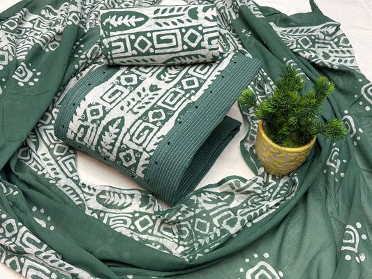 Cotton Mirror work Hand Block Batik Dress Material ( Unstitched)