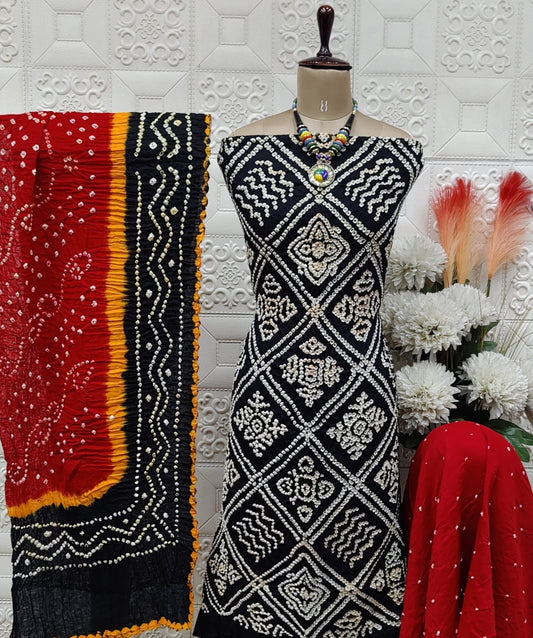 Cotton Satin Self Contrast Tye n dye Kutch Bandhani Dress Material