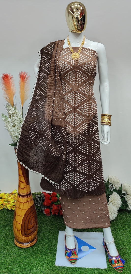 Dhupiyan Silk Jamevali Work Bandhani Dress Material
