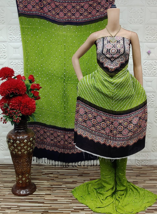 Cotton satin Self Color Contrast Original Kutch Bandhani Dress Material