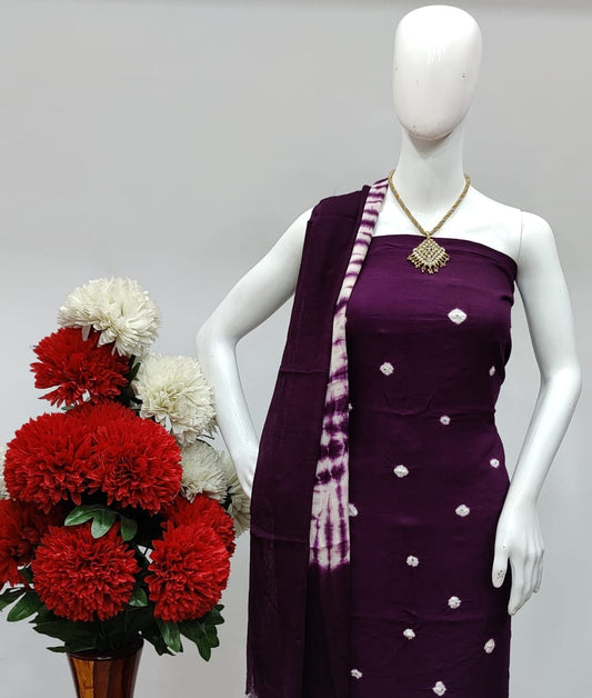 Cotton Tye and Dye Self Colour Bandhani Material (Unstitched)