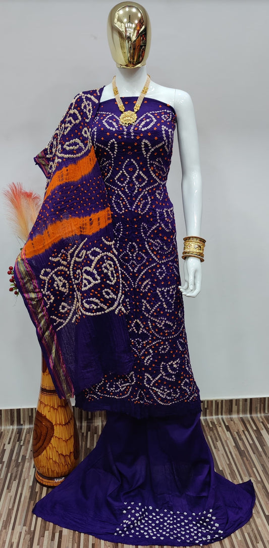 Ghazi Silk Heavy Barik Bandhej work Silk Bandhani Dress Material (Unstitched)Vendor:Ethenika.comRegular price Rs. 5,990.00Regular priceUnit price per-