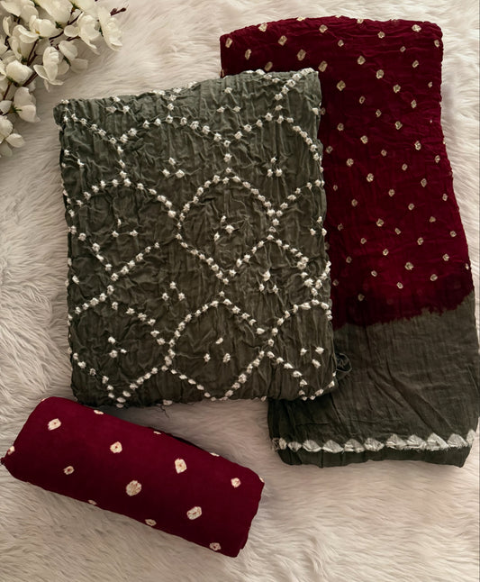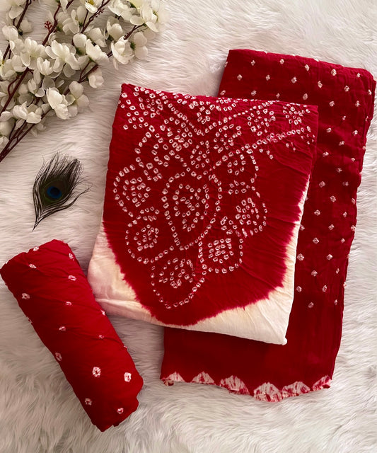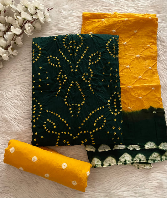 Cotton Satin Authentic Hand Crafted Kutch Bandhani Dress Material (Unstitched)