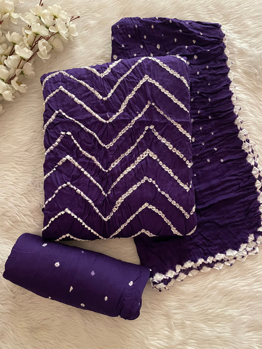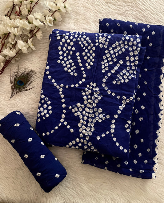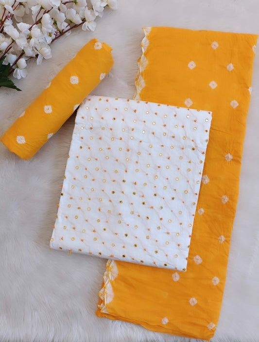 Soft Cotton Mirror Thread Work Bandhani Salwar Material (Unstitched)