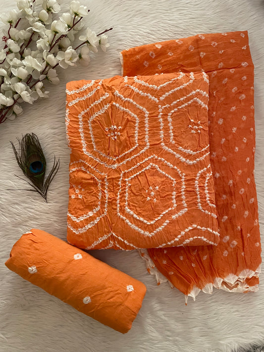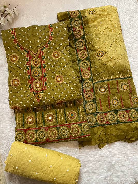 Cotton Satin Kutch Original Hand Crafted Bandhani Dress Material (Unstitched)