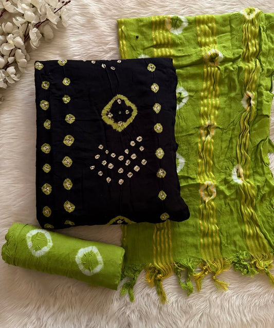 Cotton Satin Barik Bandhej work Black Bandhani Dress Material (Unstitched)