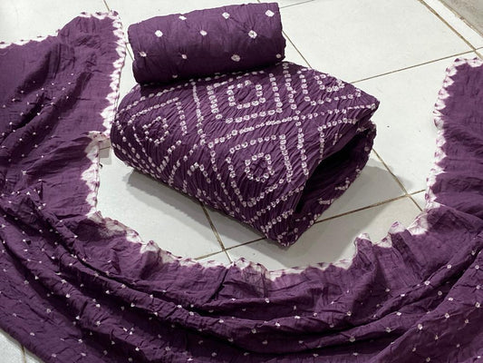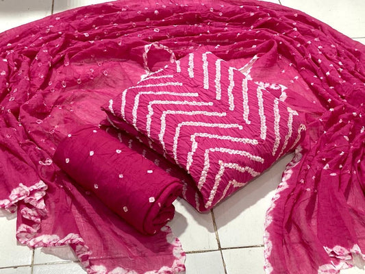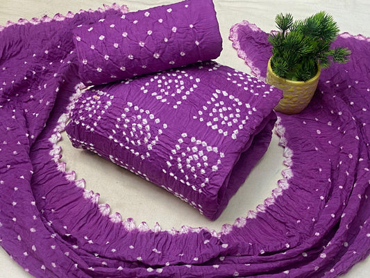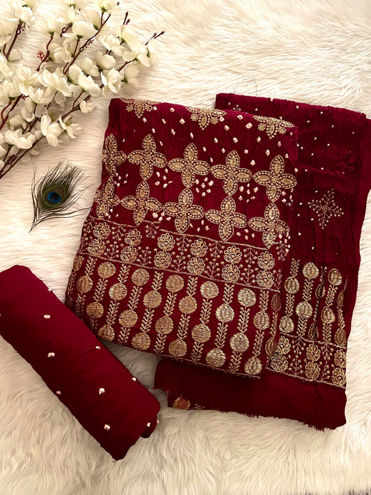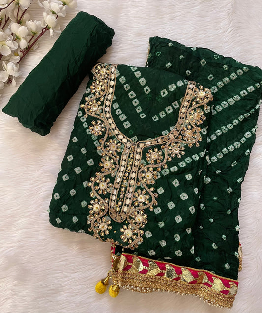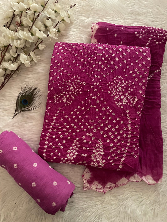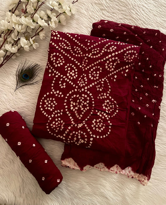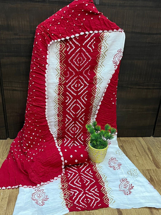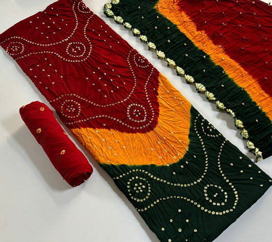Modal Ghazi Silk Original Hand crafted Silk Bandhani Dress Material (Unstitched)