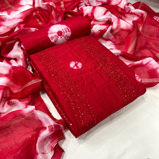 Viscose Cotton Croset work Shibori Bandhani Dress Material (Unstitched)