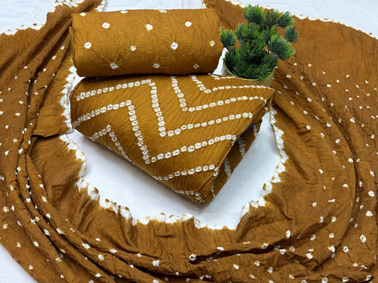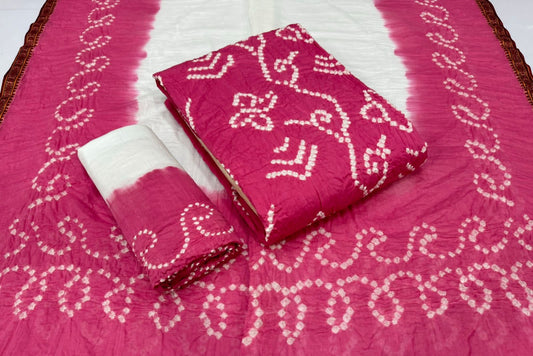 Cotton Satin W pattern Bandhani Dress Material