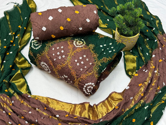 Cotton Satin Golden Thread Embroidery work Bandhani Dress Material
