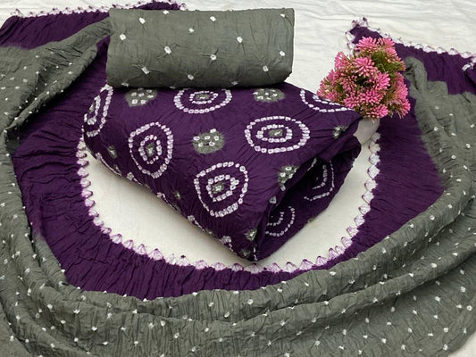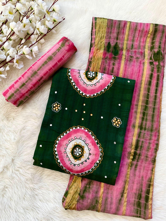 Cotton Satin Authentic Hand Crafted Kutch Bandhani Dress Material