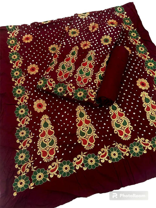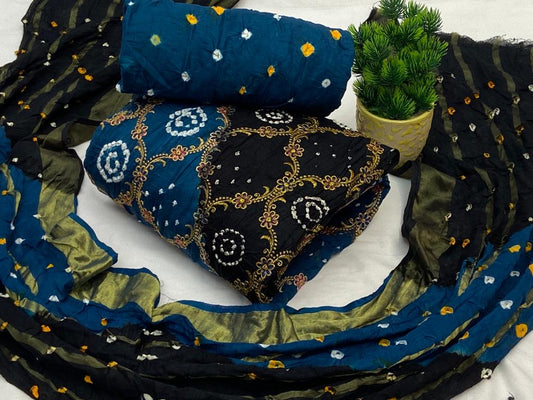 Cotton Kasab Embroidery Work Bandhani Dress Material
