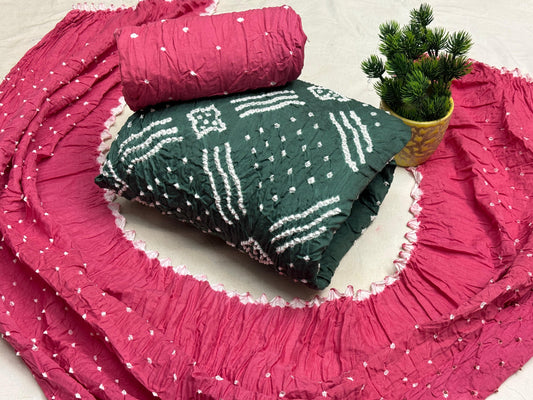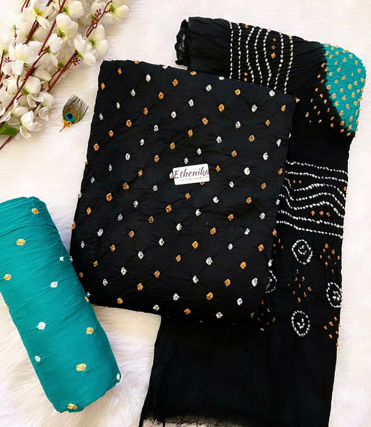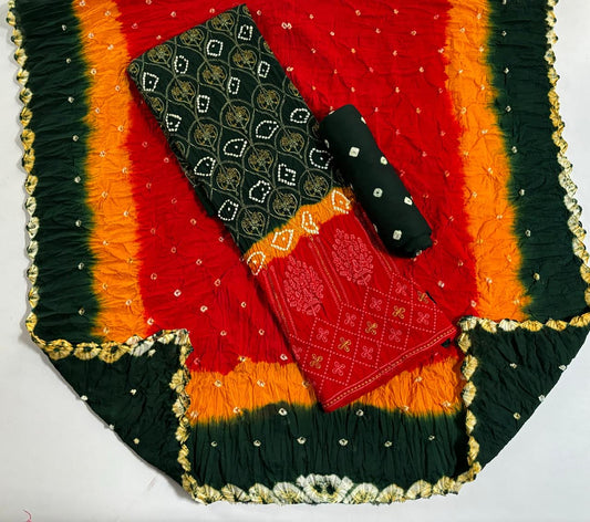 Cotton Bandhani Dress Material with Thread Embroidery Work