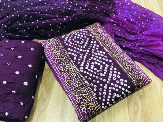 Cotton Hand Blocked with Bandhani Dress Material