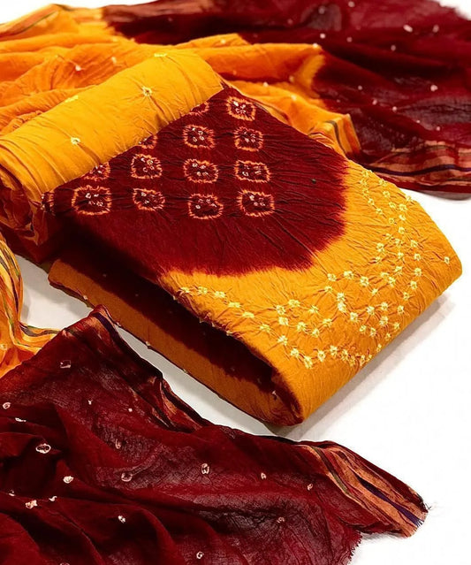 Soft Cotton Hand Crafted Kutch Bandhani Dress Material (Unstitched)