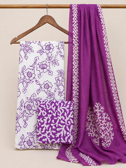 Soft Cotton Hand Blocked Summer Special Batik Dress Material (Unstitched)