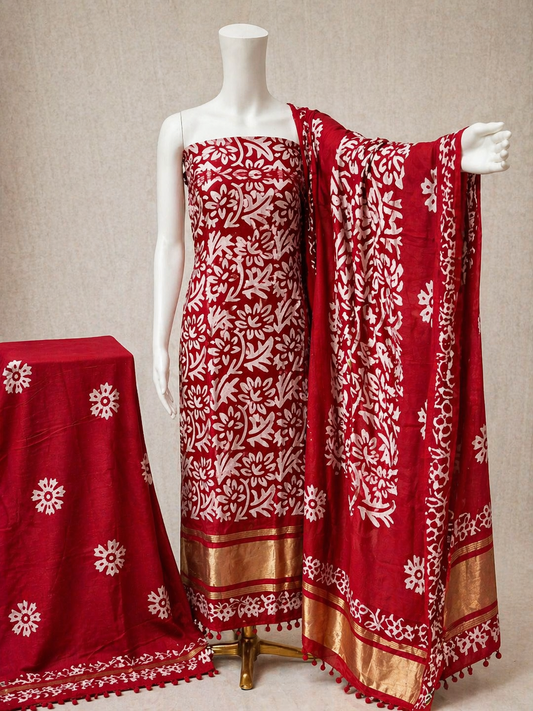 Soft Cotton Hand Blocked Batik Dress Material (Unstitched)