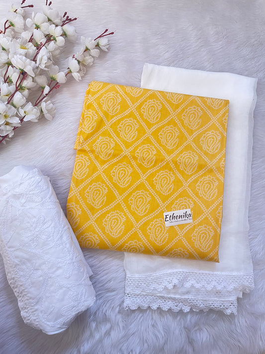 Chikankari Bandhani work Contrast Bandhani Dress Material