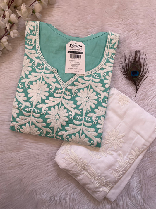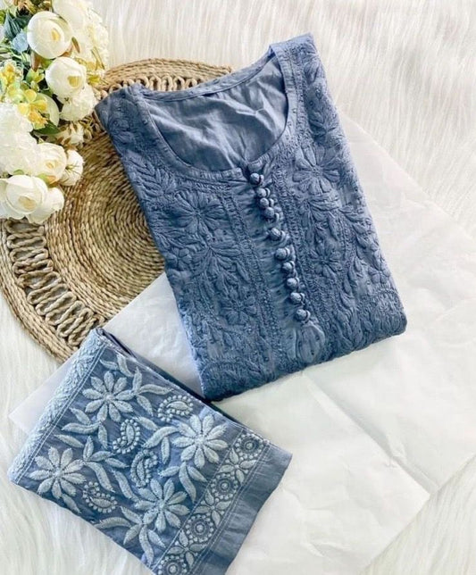 Ethenika Premium Cotton Chikankari Kurti Palazzo Set (Stitched)