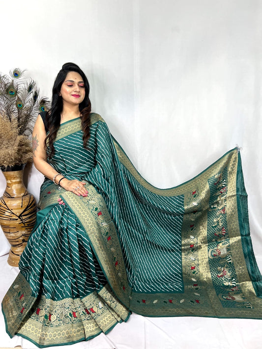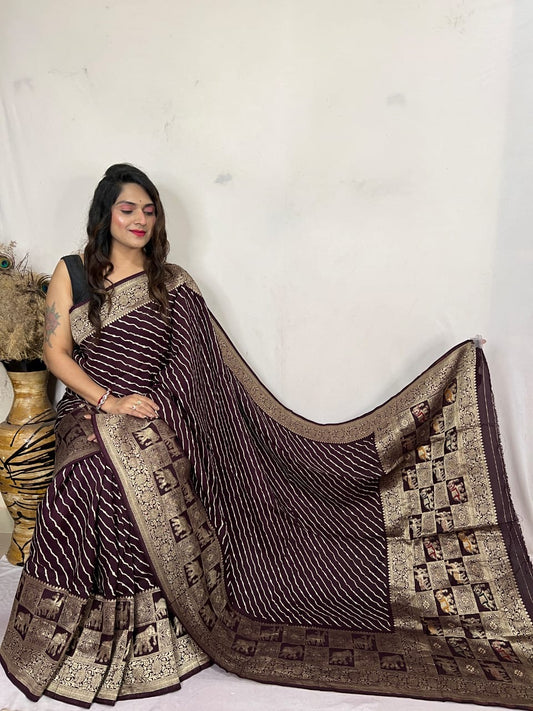 Modal Silk Barik Bandhej work Lagdi Patta Border Chex Bandhani Saree