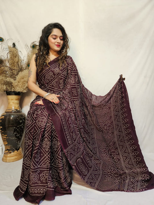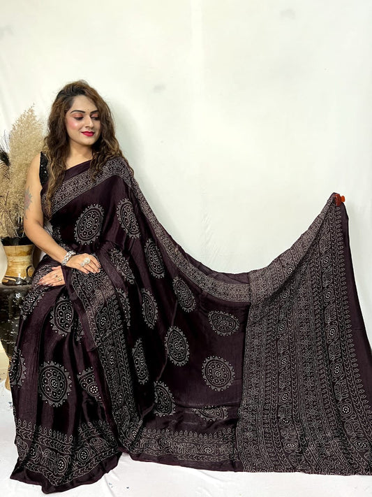 Modal Silk Ajrakh Bandhani Print Silk Saree