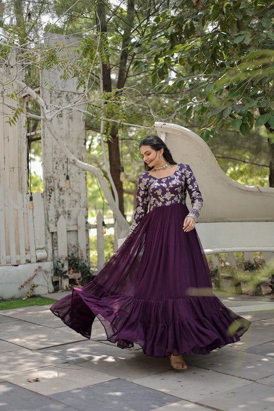 Heavy Silk Emboidery work Anarkali gown (Stitched)