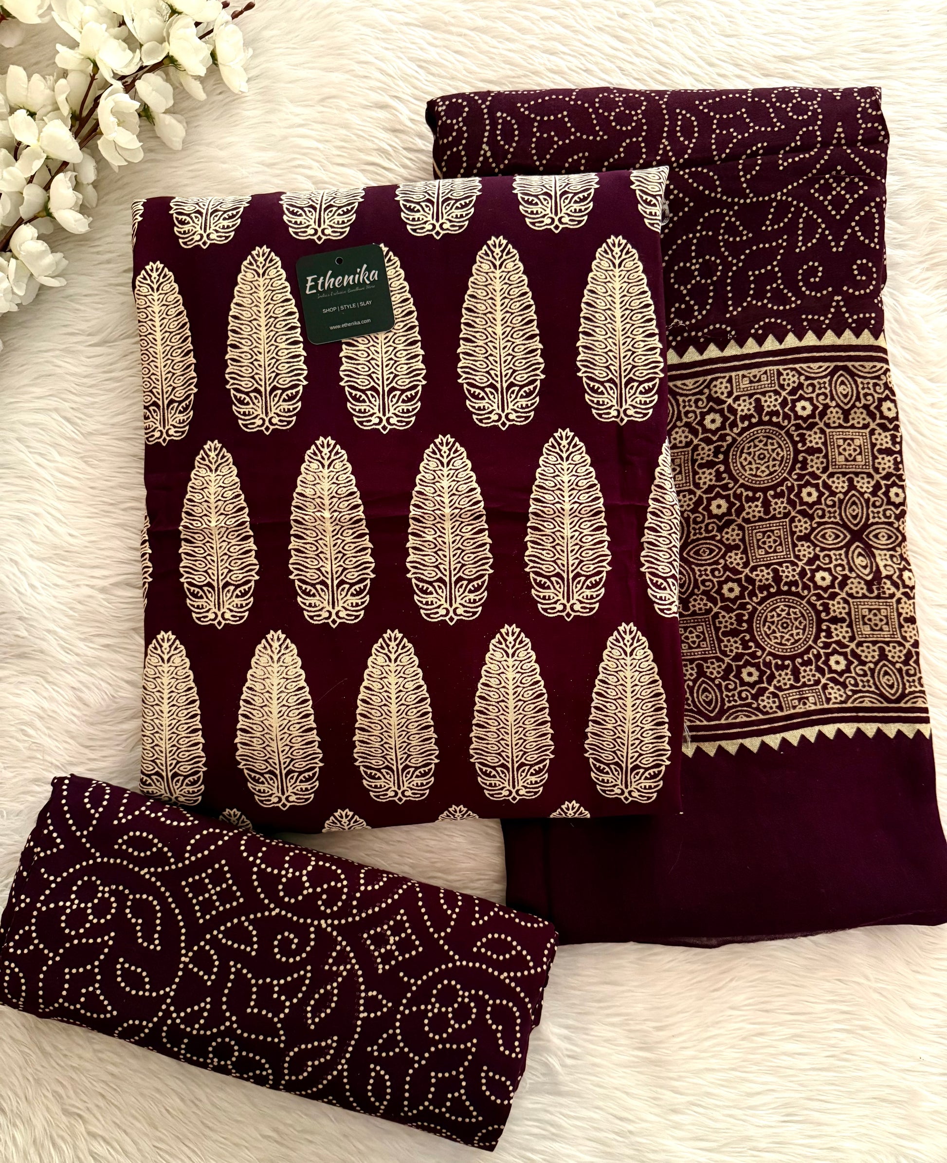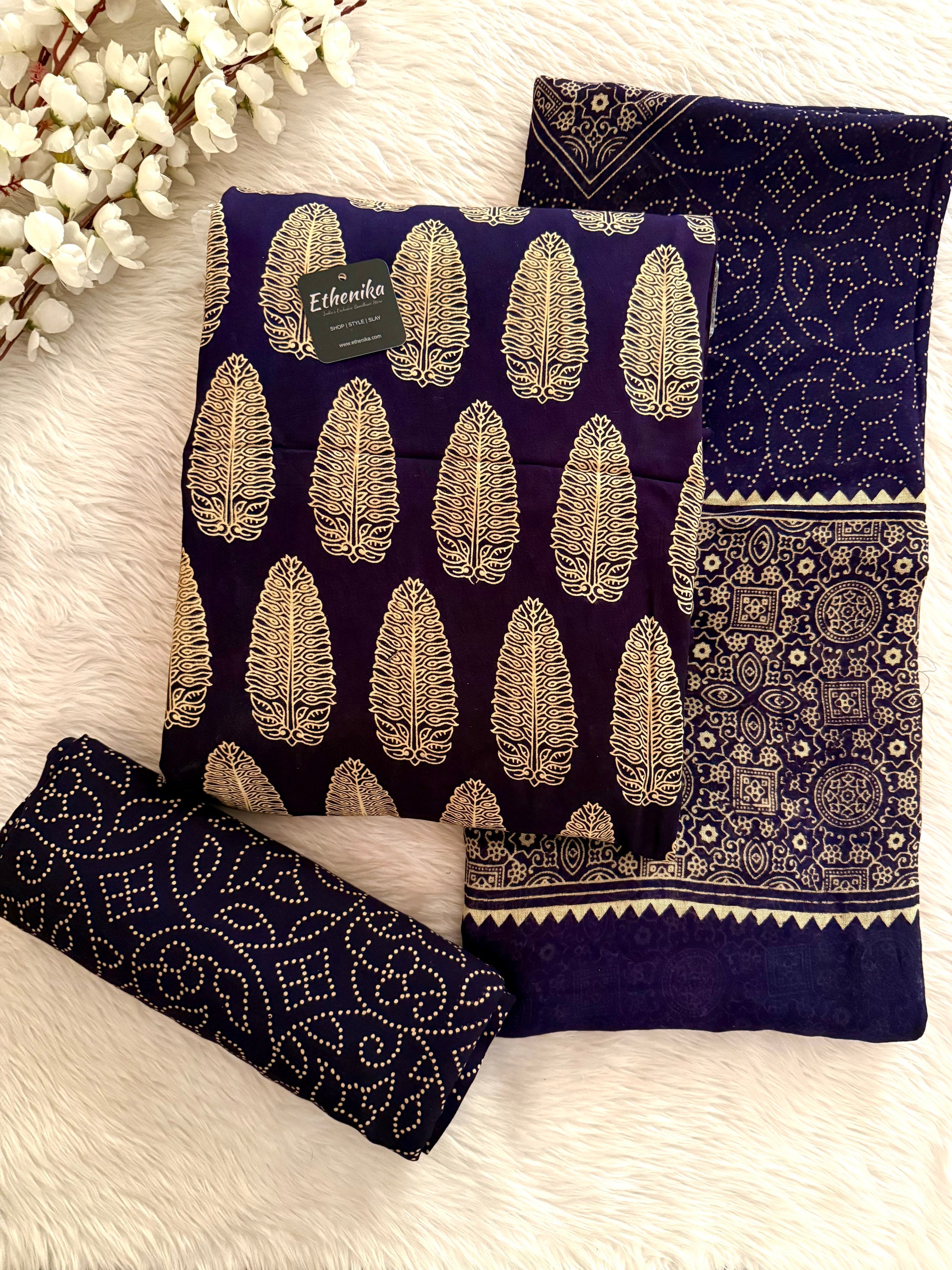 Cotton Ajrakh Print Work Elegant Concept Dress Material (Unstitched)