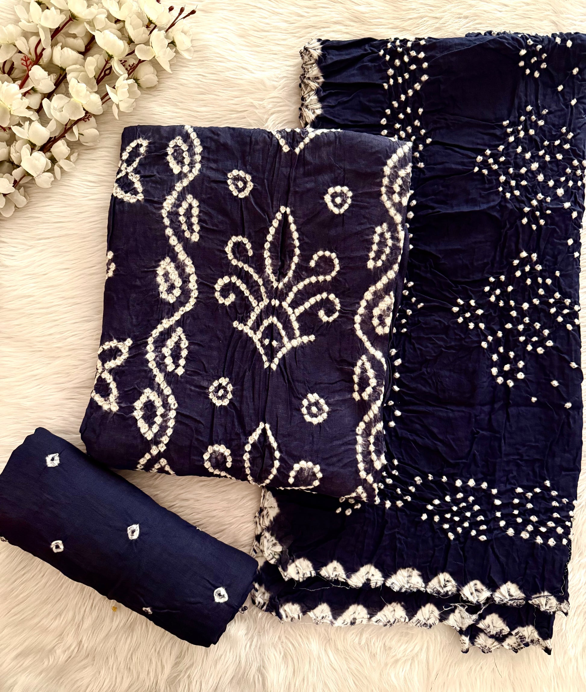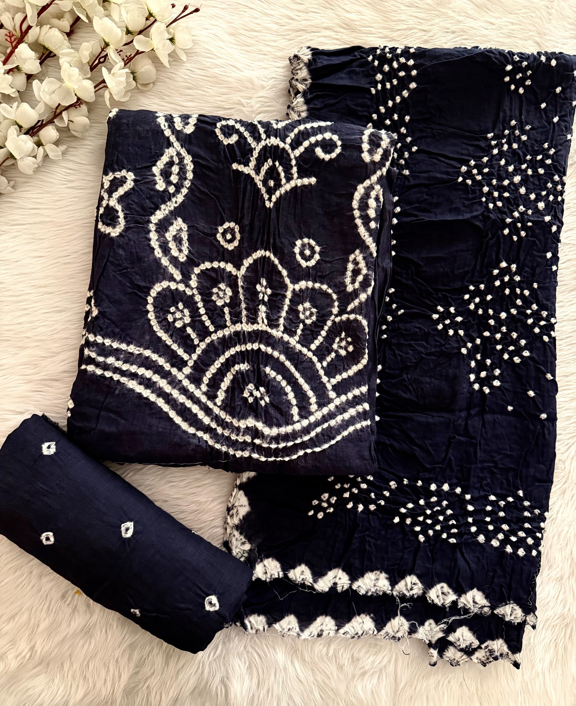 Cotton Satin Kutch Original Hand Crafted Bandhani Dress Material (Unstitched)