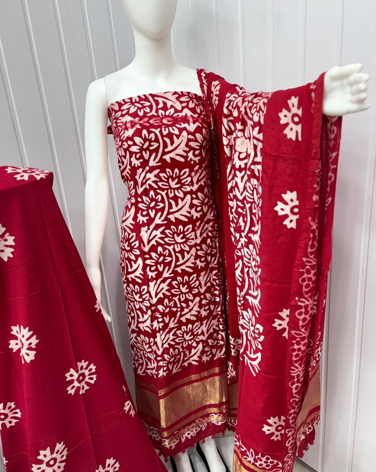 Gaji Silk Hand Blocked Batik Dress Material