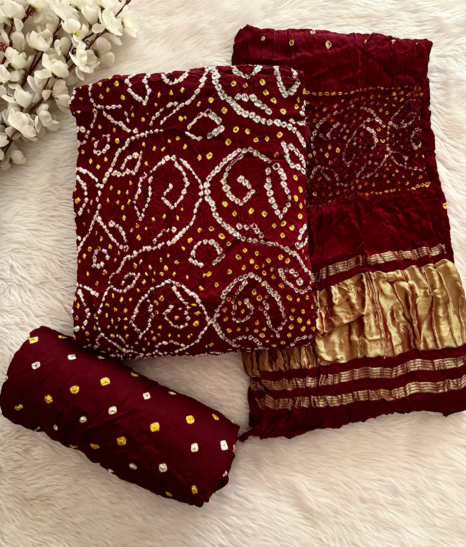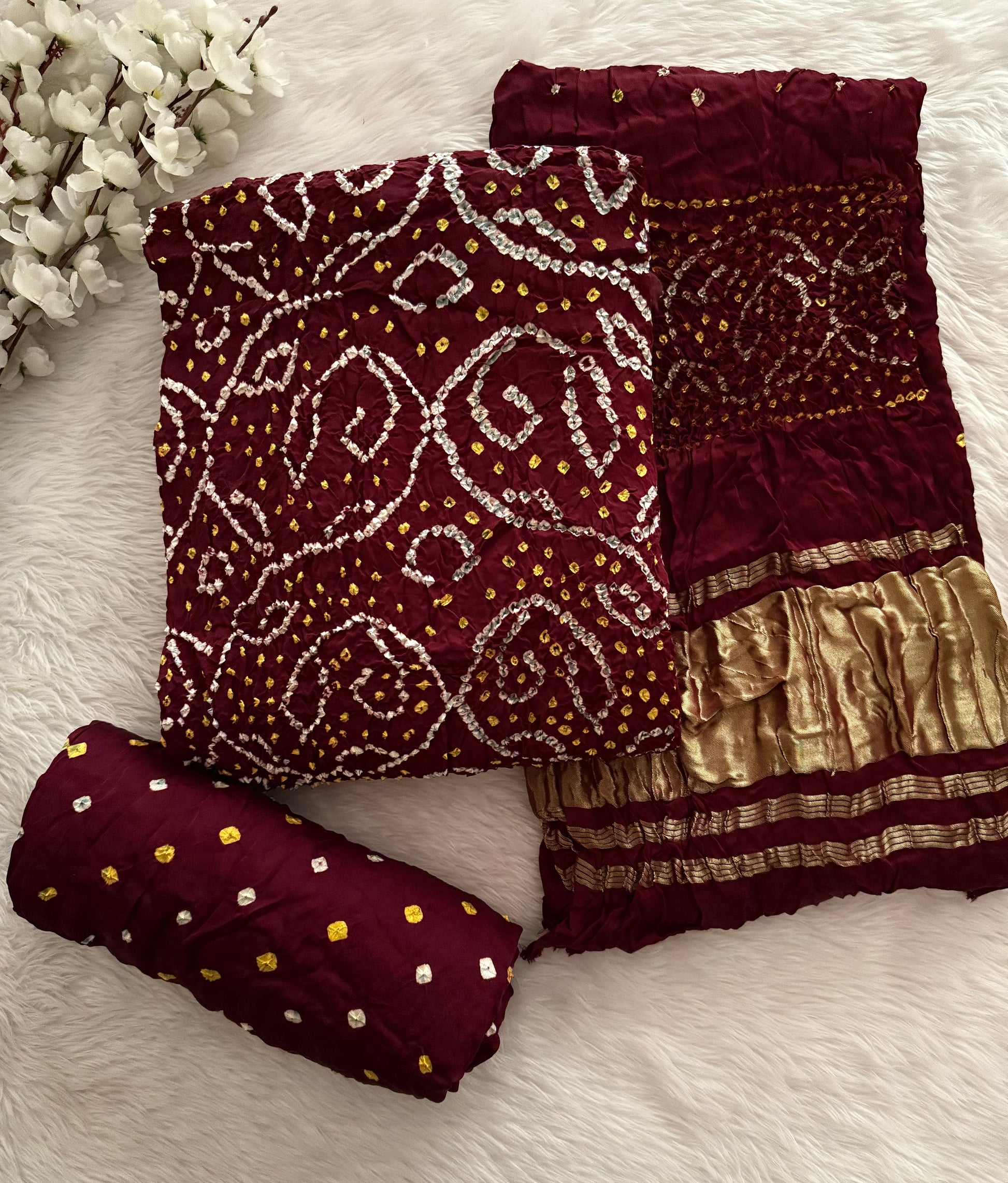 Heavy Modal Silk Barik Bandhej Work Jamnagar Bandhani Dress Material (Unstitched)