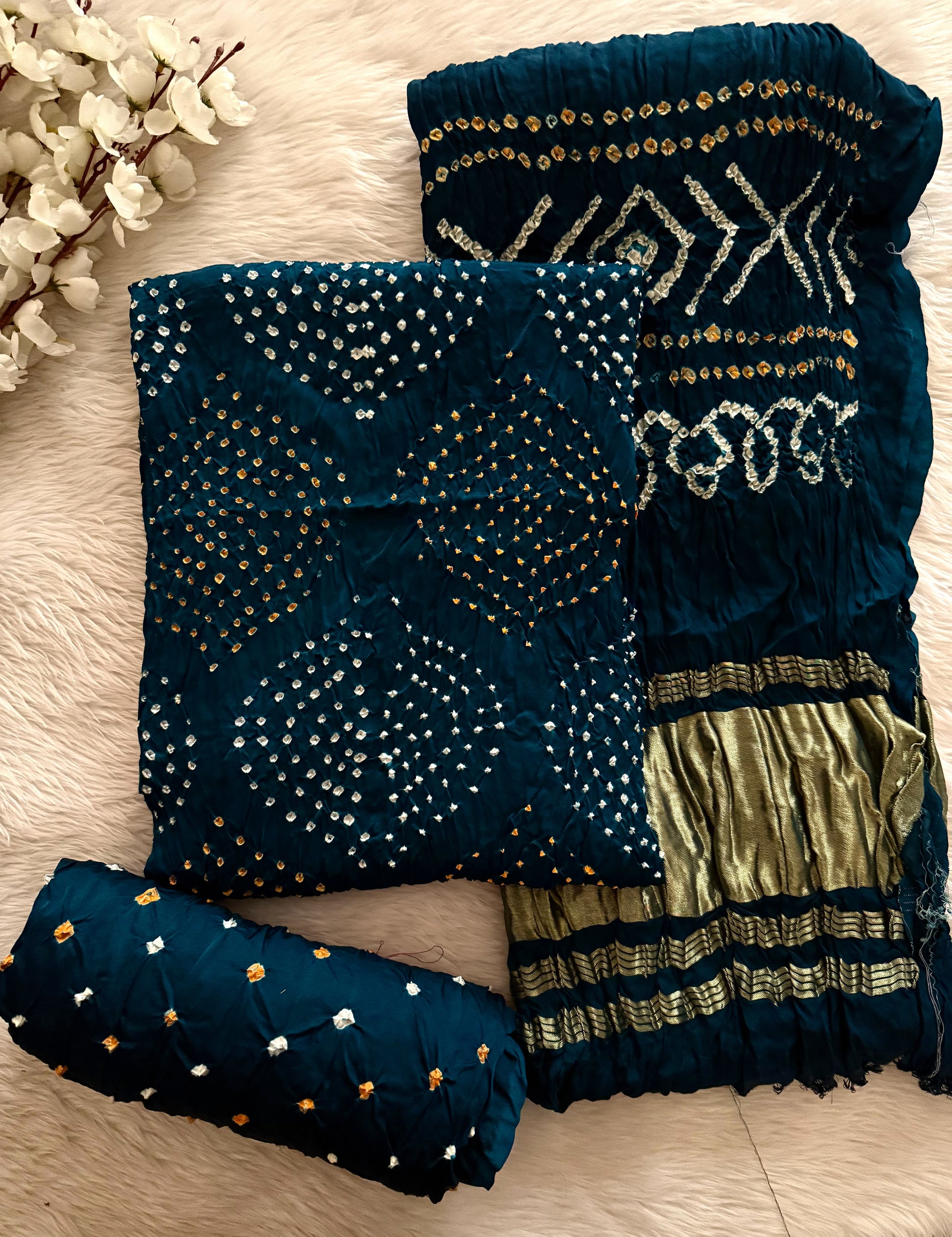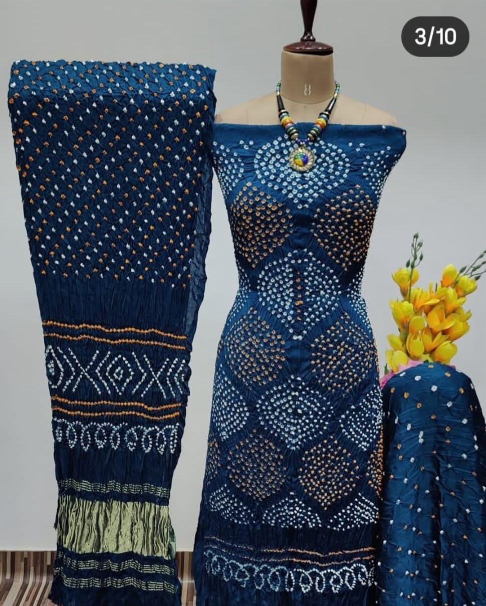 Modal Silk Barik Bandhej Work with Lagdi Patta Duppatta 3Pc Bandhani Dress Material