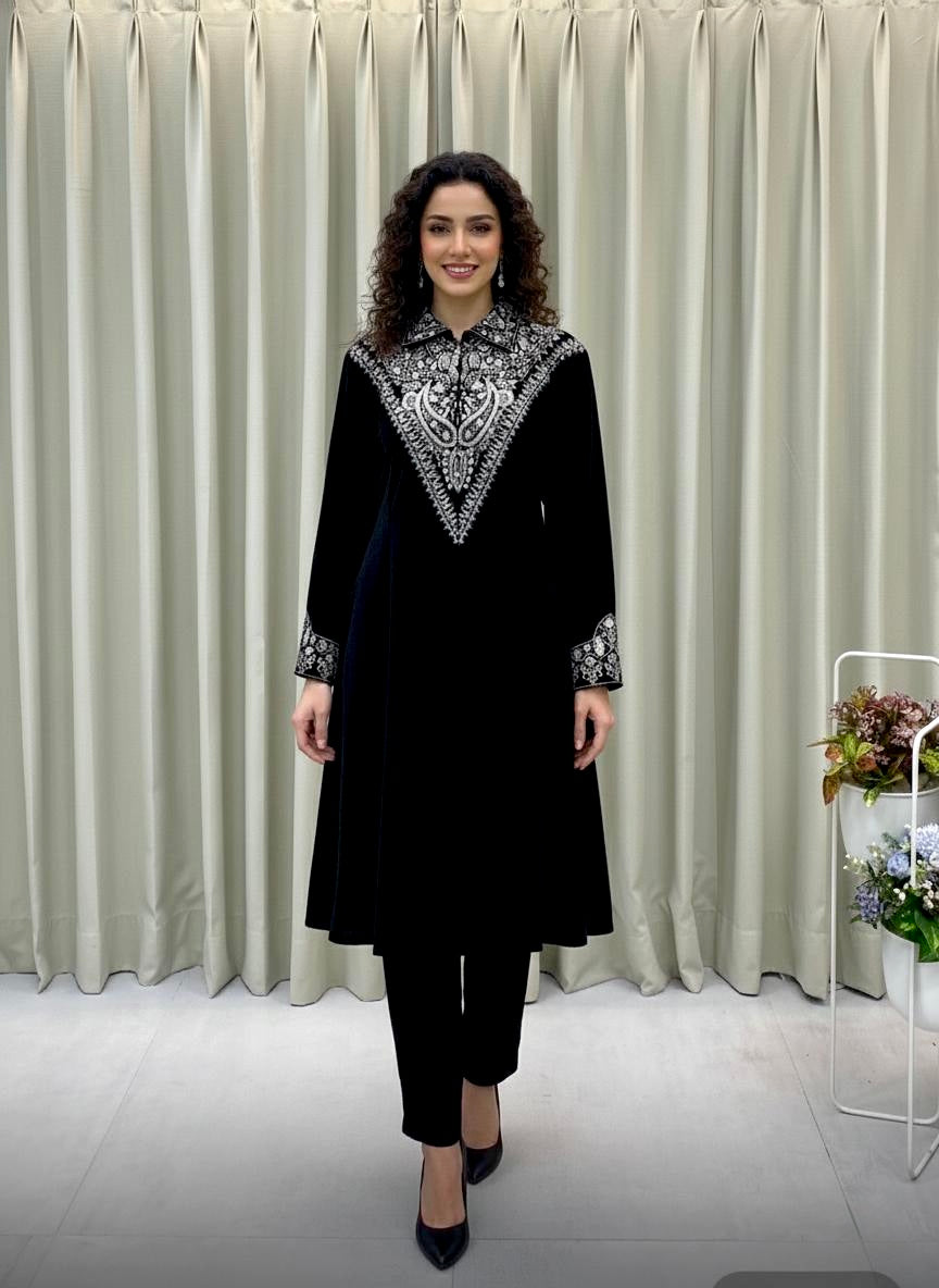 Neck Sequence Embroidery Work with Collar Velvet Cord Set