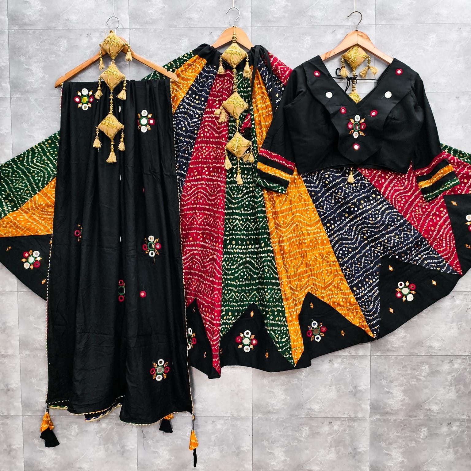 Pure Rayon Multicolor Bandhani Print Navratri Special Designer Chaniya Choli (Ready to Wear)