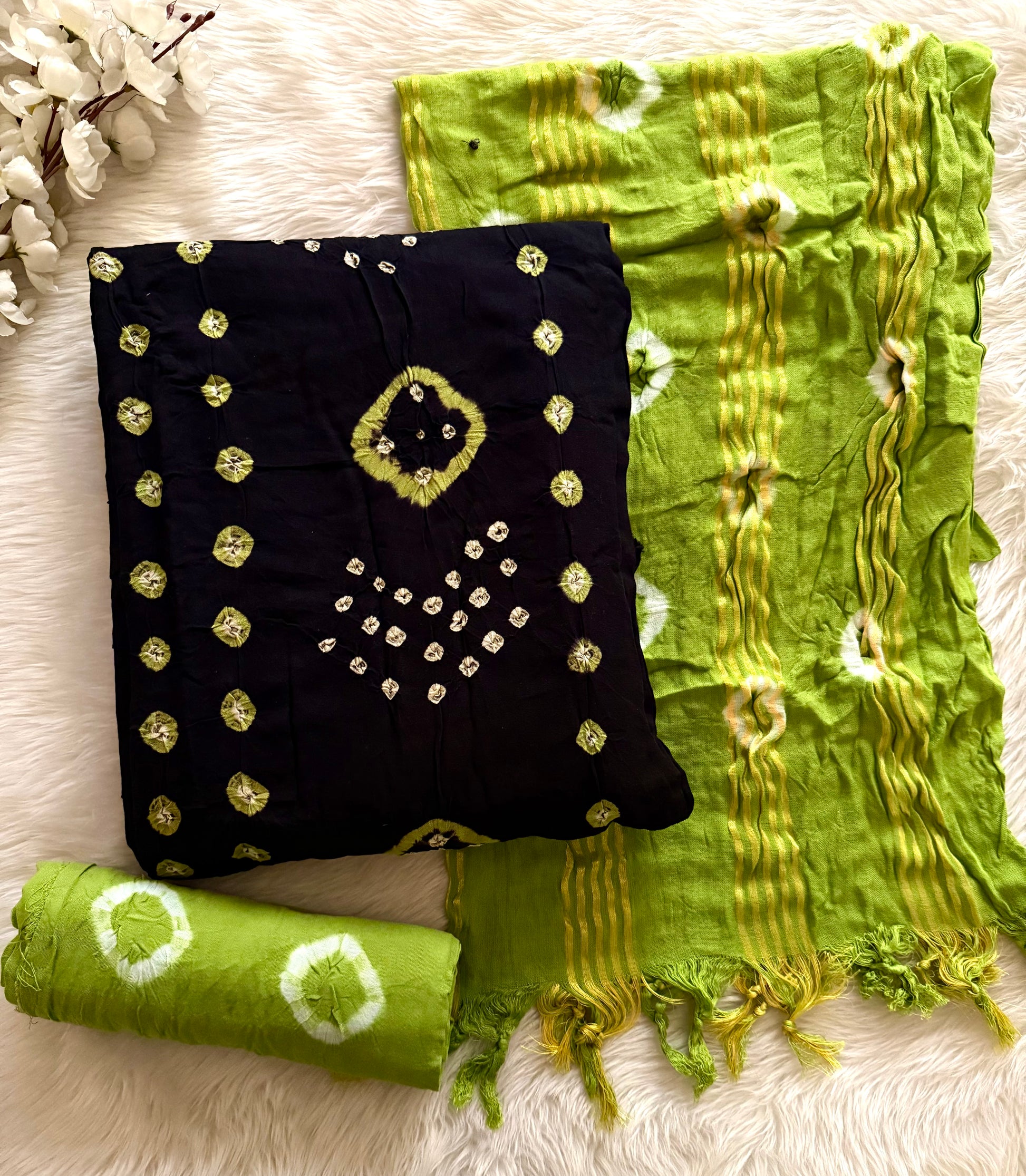 Rayon Dual Contrast Bandhani Dress Material (Unstitched)